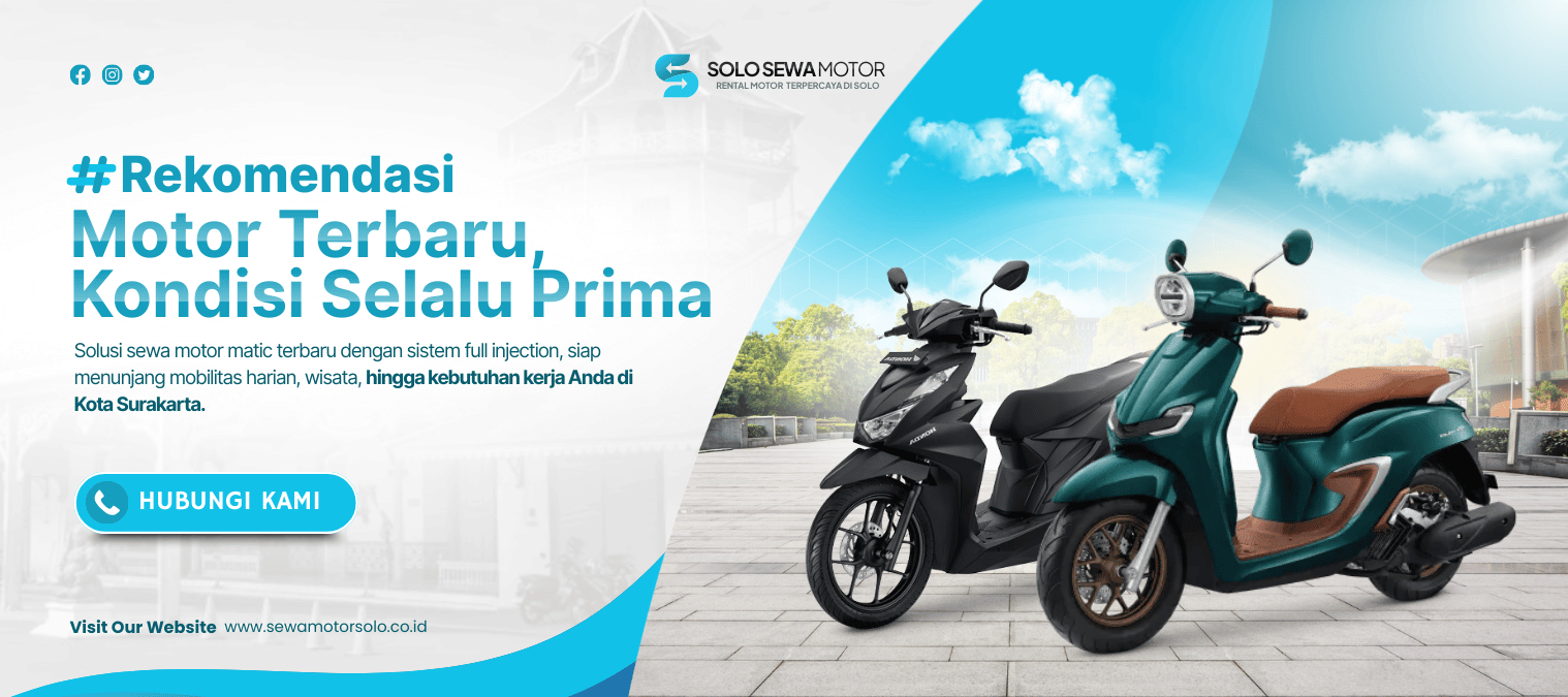 @solosewamotor layanan sewa motor matic terbaru full injection di Kota Surakarta (Solo) yang siap mendukung mobilitas harian, wisata, hingga kebutuhan kerja Anda. Kami menyediakan pilihan motor yang lengkap, kondisi prima, dan harga transparan untuk durasi 12 jam maupun 24 jam.